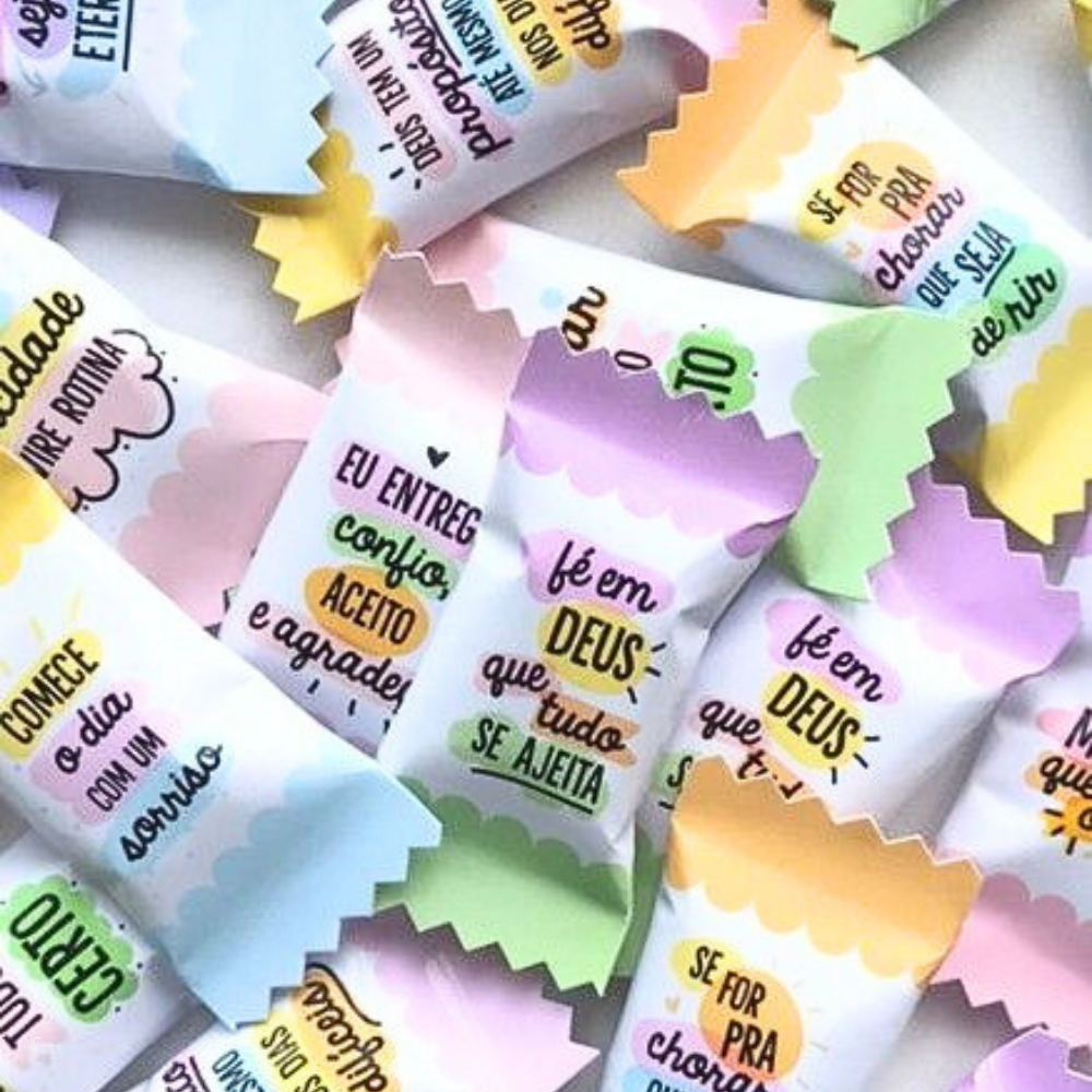 Personalizamos com a logo da sua empresa, evento ou mensagem especial, na parte de trás da balinha 🎉