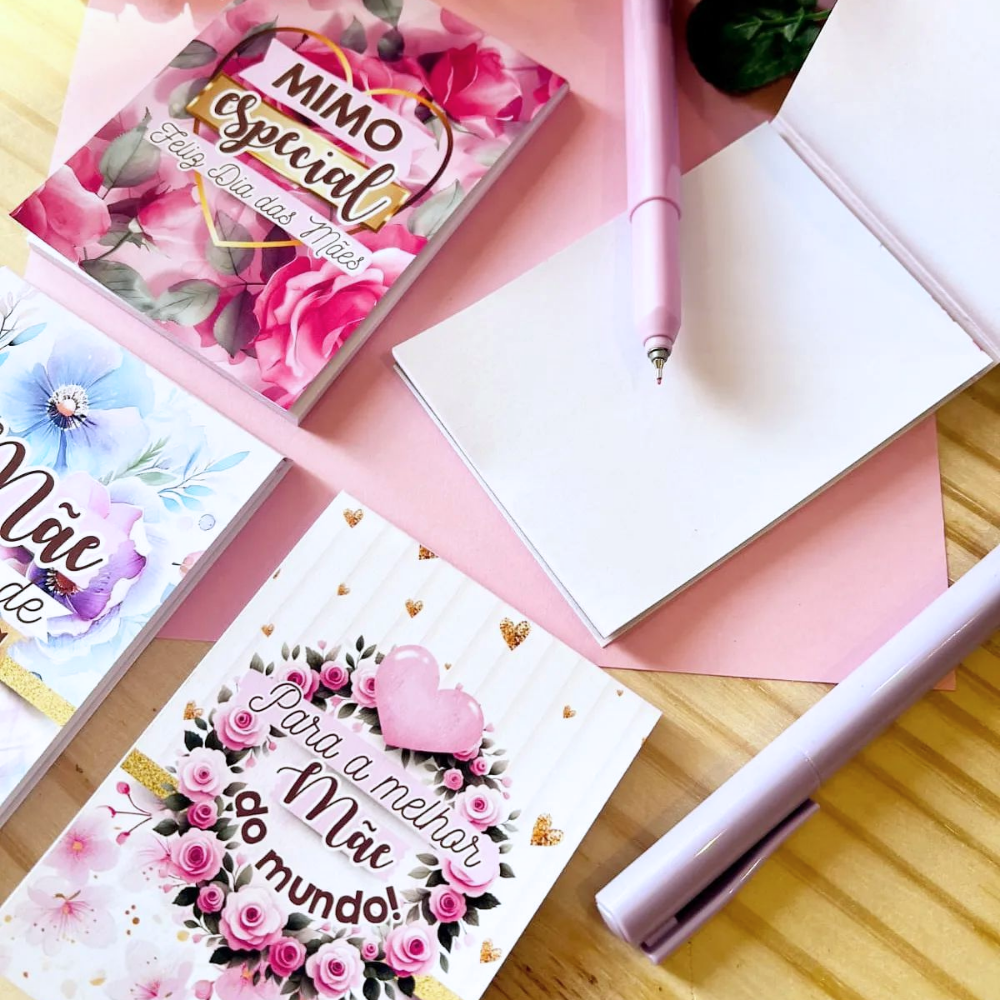 Com capa personalizada com sua logo, imagem ou arte e miolo neutro destacável, ele é um mimo funcional e cheio de carinho.