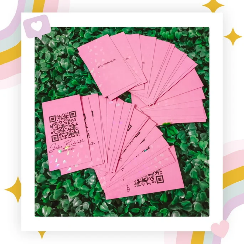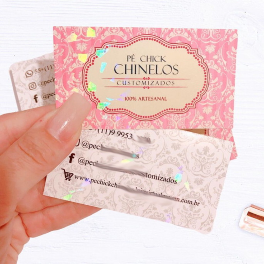 Destaque seu negócio com nossos Cartões de Visitas personalizados, que oferecem acabamento simples em brilho comum Fosco ou holográfico ✨ para dar aquele toque especial e profissional. Você pode escolher entre impressão apenas na frente ou frente e verso, garantindo mais espaço para suas informações 📇.