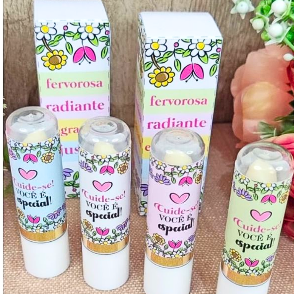 Cera Alba 🐝 | Cera de Candelila 🌿 | Cera de Carnaúba 🌴 | Ozokerite | Manteiga de Cacau 🍫 | BHT | Metilparabeno | Glicerídeos Hidrogenados de Soja 🌱 | Óleo de Rícino 🌰 | Própolis 🍯 | Aroma 💐