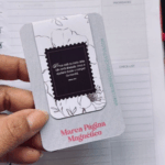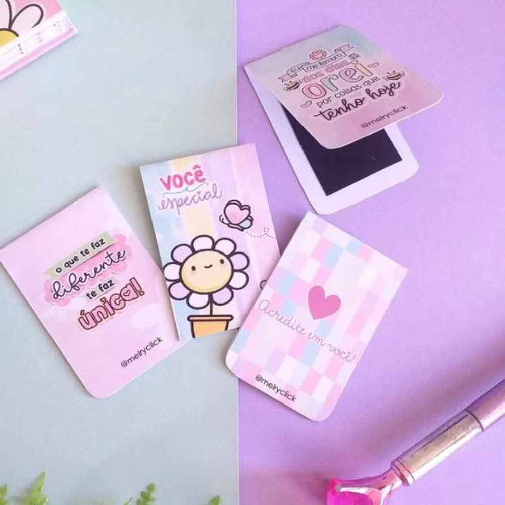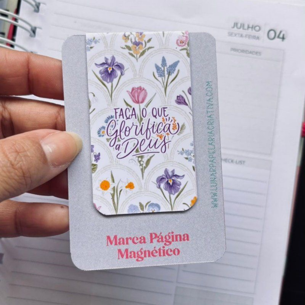 Esse marca página possui ímã interno, permitindo que ele dobre sobre a página e fique firme sem escorregar.
