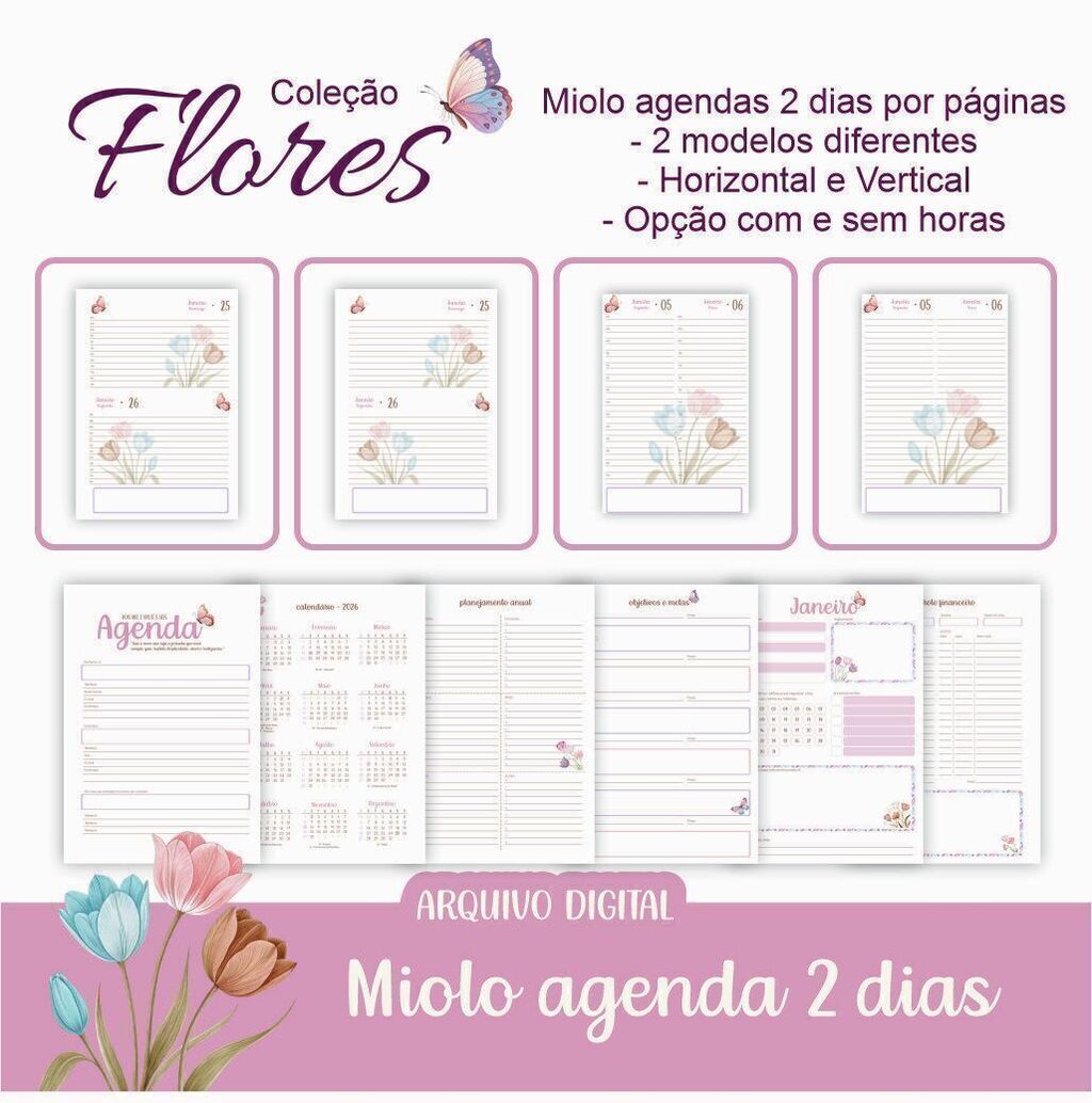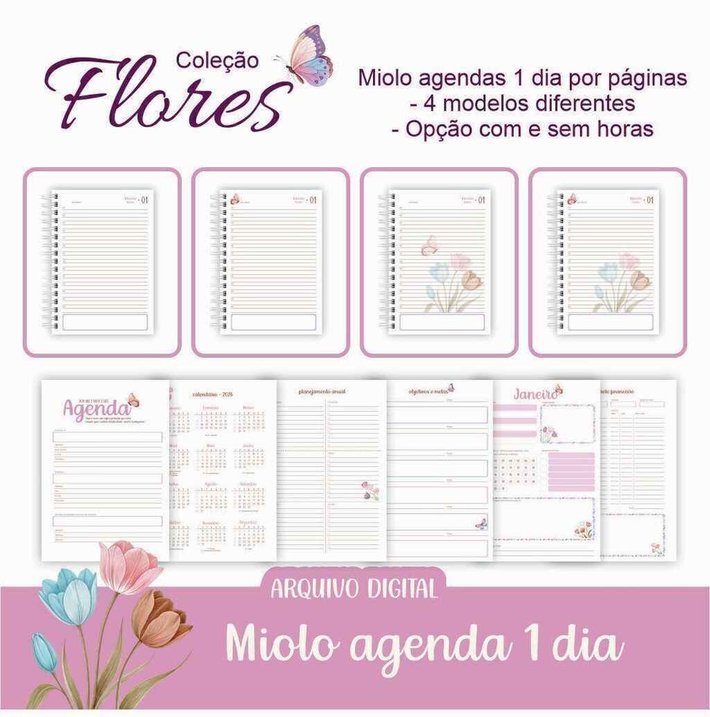 Agenda Flores 1 ou 2 dias por Páginas ( Capa Personalizável )