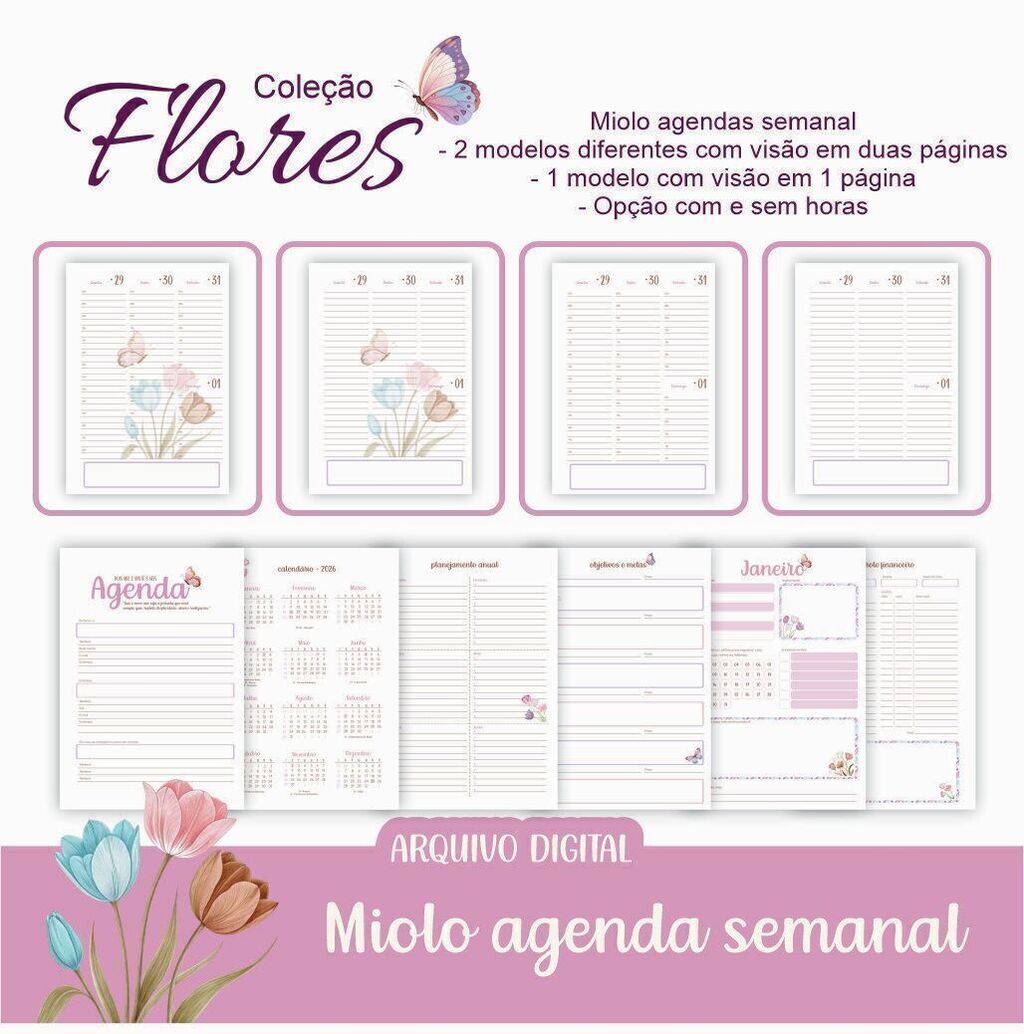 Início Presentes Criativos Agenda Flores 1 ou 2 dias por Páginas ( Capa Personalizável )