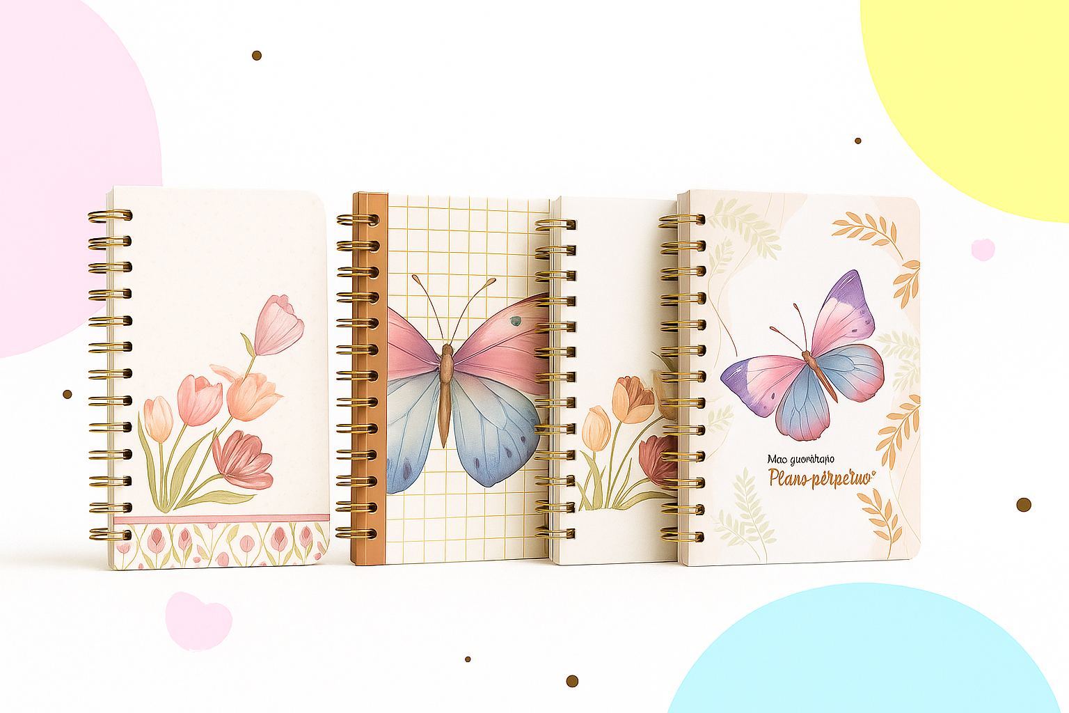 📒 Bloco de Notas Personalizado – A6 com Wire-o (80 folhas)Ideal para quem gosta de praticidade e estilo. Com miolo