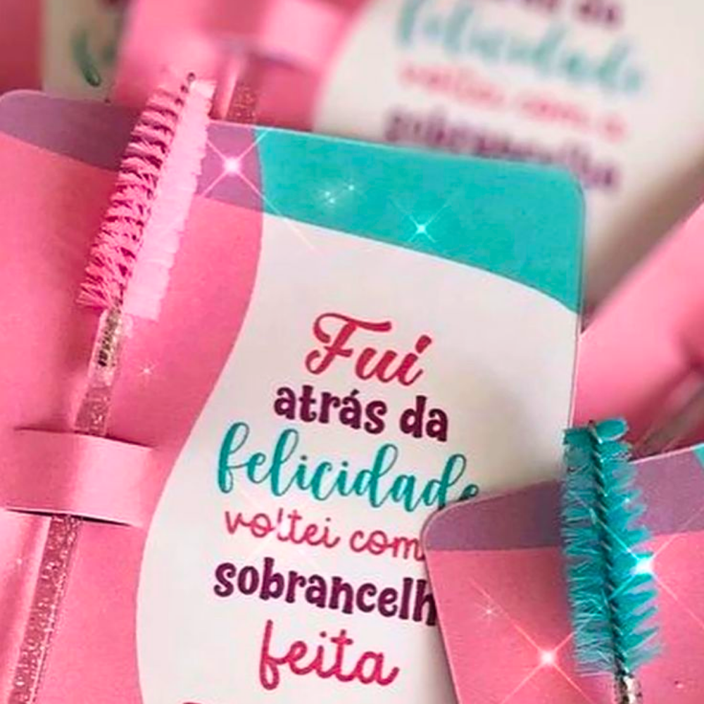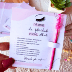 Para você, Lash Designer, que ama encantar em cada detalhe, temos a escovinha de cílios personalizada com tag exclusiva — um brinde simples, mas que conquista corações.