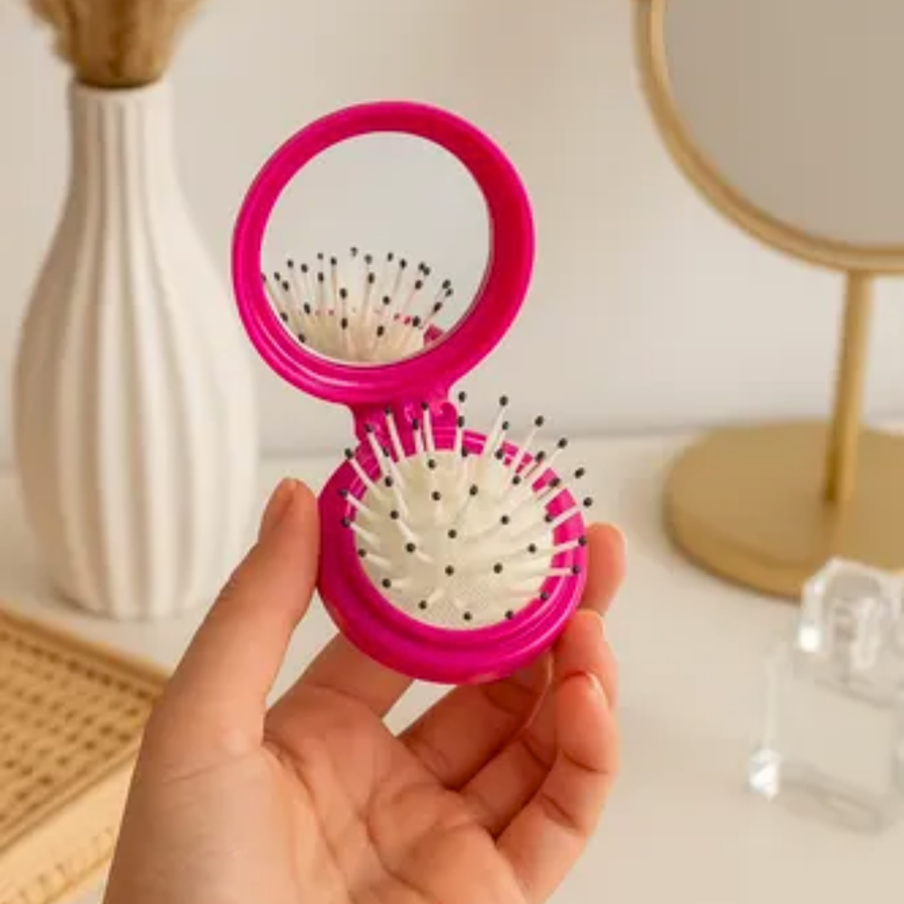 Nossa escovinha dobrável com espelhinho é perfeita para quem gosta de cuidar do visual em qualquer lugar.